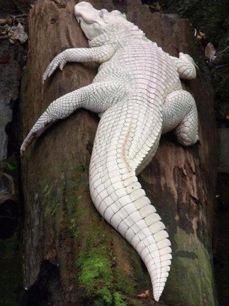 사진 속에서는 악어 한 마리가 머리부터 발끝까지 온통 흰 색을 띠고 있는 모습이 담겨있다. 세포에서 멜라닌 합성이 결핍되면 나타나는 증상으로 '알비노(백색증)'라 부른다.