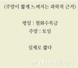 22일 온라인 상에서 '주말이 짧게 느껴지는 과학적 근거'라는 제목의 게시글이 눈길을 모으고 있다.