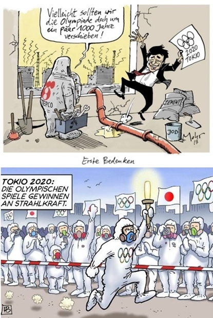 프랑스 언론이 일본 후쿠시마 원전의 방사능 오염수 유출과 도쿄의 2020년 올림픽 개최지 선정과 관련한 만평을 게재해 논란이 일고 있는 가운데 독일 언론도 풍자 만평들을 실으며 가세했다.