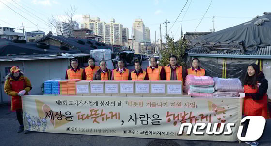 (서울=뉴스1) 박지혜 기자 = (서울=뉴스1) 박지혜 기자 28일 오후 서울 송파구 거여동 개미마을에서 한국도시가스협회 주최로 열린 도시가스업계 봉사의 날 행사에서 이만득 협회장과 관계자들이 저소득층 이웃을 찾아 월동용품을 전달하기 앞서 기념촬영을 하고 있다.한국도시가스협회는 이날 저소득층의 도시가스 난방비 지원을 위한 기금 1억원을 한국에너지재단에 전달했다. 2013.11.28/뉴스1 <저작권자 뉴스1 코리아, 무단전재 및 재배포 금지> ☞ 뉴스1 바로가기 독자들의 PICK! 동서와 갈등→파혼 2번 아내..."조카는 남편 아이" 의심 충격 "남성 의사가 은밀한 곳 봤잖아" 이혼 선언…산부인과서 난동 "솔로몬도 못 풀어"...쌍둥이 형제와 관계 후 낳은 딸, 친부는 누구? "자기야" 댄스강사 그놈, 여친만 8명?..."교통사고 났어" 2억 뜯었다
