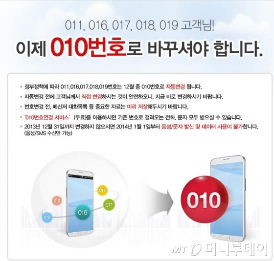 2011년 정부가 스마트폰 보급을 촉진하기 위해 010으로 번호를 바꾸지 않고도 예전 번호로 스마트폰을 사용할 수 있도록 허용해준 '01X 한시적 번호이동 제도'가 올해 말 종료되기 때문이다.
