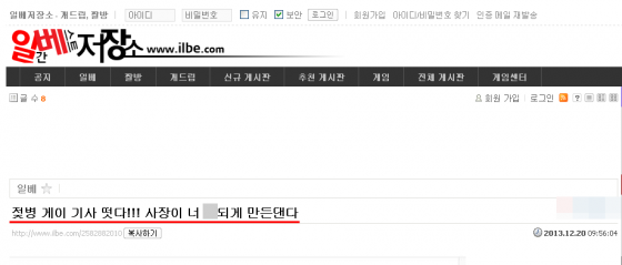 '젖꼭지 빤다'는 게시물 추천해놓고 게시자 해고되자 '불구경'하는 일베 회원들
