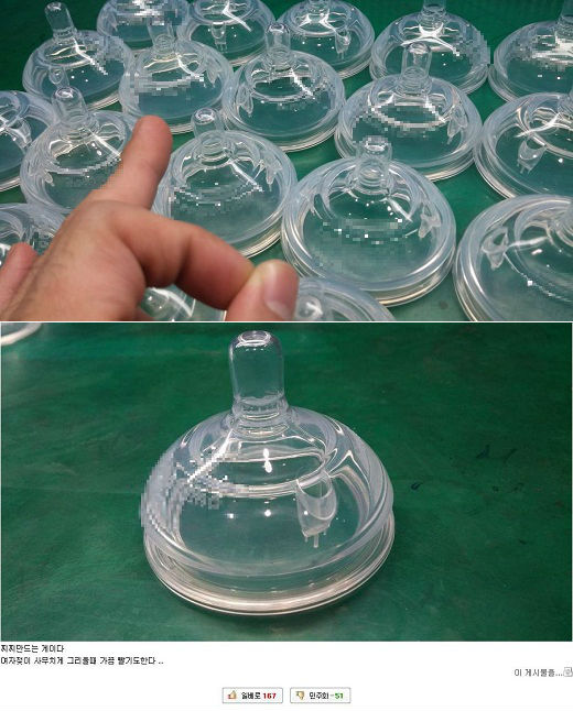 앞서 한 일베 회원은 지난 19일 일베에 출고 전 젖병 등의 사진과 함께 "찌찌 만드는 게이다. 여자젖이 사무치게 그리울 때 가끔 빨기도 한다"며 출고 전 젖꼭지를 자신이 입으로 빤다는 주장을 올려 논란이 됐다.