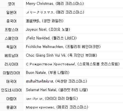 12월 25일 크리스마스를 이틀 앞둔 23일 한 포털 사이트에 언어별 크리스마스 인사가 게시돼 누리꾼들 사이에서 화제다.