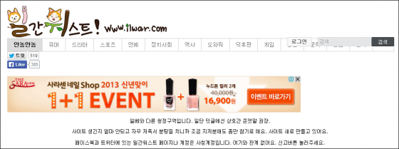 운영진은 또 "페이스북과 트위터에 있는 일간워스트 페이지나 계정은 사칭계정입니다. 여기와 관계 없어요. 신고 버튼 눌러주세요"라고 덧붙였다.