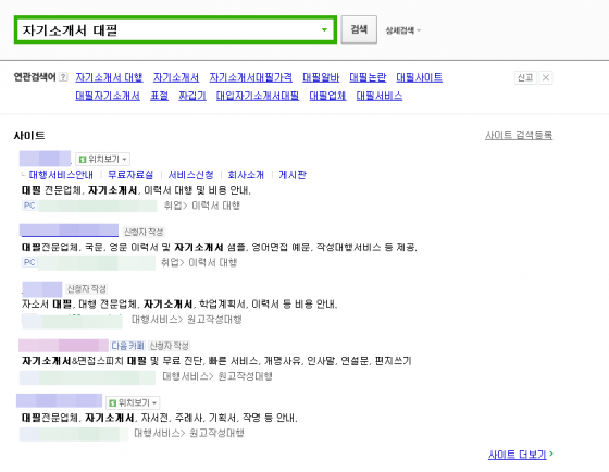 인터넷 포털사이트 검색창에 '자기소개서 대필', '자기소개서 대행' 등의 검색어를 치면 자기소개서를 대필해주는 업체들을 손쉽게 찾을 수 있다. 스스로 '대필작가' 혹은 '대필 컨설턴트'라고 부르며 개인 블로그나 카페를 중심으로 활동하는 업자들이 자기소개서 대리 작성에 요구하는 비용은 1개에 평균 5~20만원 수준.