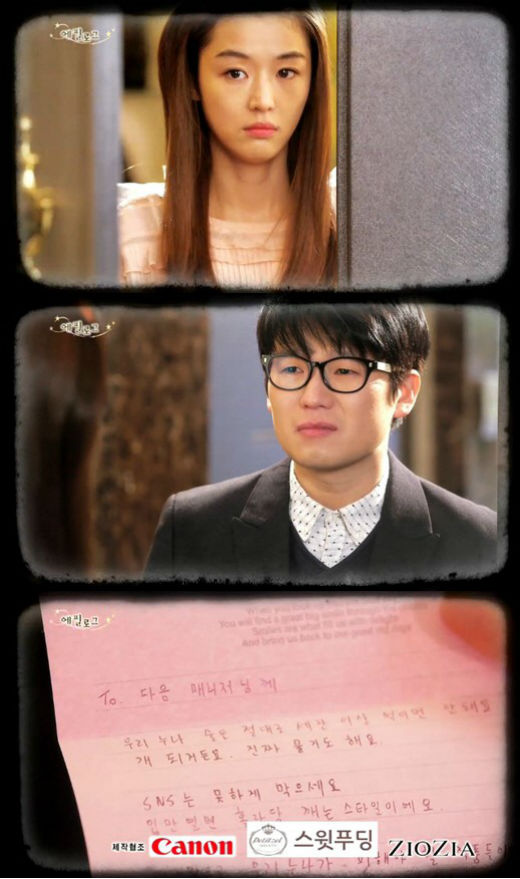 이날 방송에서 천송이는 각종 드라마, 광고에서 퇴출되고 소속사와의 재계약도 보류되는 등 연예계 퇴출 위기를 맞았다. 이에 천송이와 헤어지게 된 매니저가 다음 매니저에게 당부하는 편지를 전하기 위해 방문한 것.