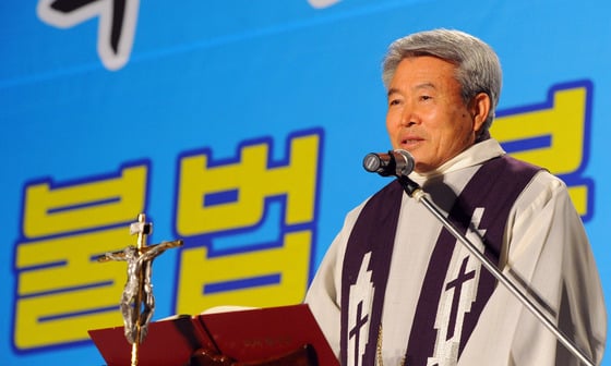 박 신부는 24일 저녁 7시 전북 전주시 풍남문 광장에서 천주교 정의구현사제단이 개최한 '국정원 등 국가기관 대선개입 규탄과 민주주의 회복을 위한 시국미사'에서 현 정권에 대해 "뭔가 얘기하면 옳고 그른 것을 따져서 벌줄 사람은 벌 주고 그래야 하는데 그것도 하지 않는다"며 이 같이 말했다. 박 신부는 이어 "지금 독일가서 아마 냄새 풍기고 다닐 것이다"라고 말했다.