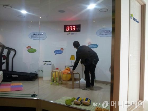 이날 체험관에선 이 기준이 어느 정도의 소음을 의미하는지 알아볼 수 있는 시연이 이뤄졌다. 문을 세게 닫아보기도 하고 쇼파에서 맨 바닥으로 뛰어보기도 하는 등 여러 가지 생활 소음들을 비교해봤다.
