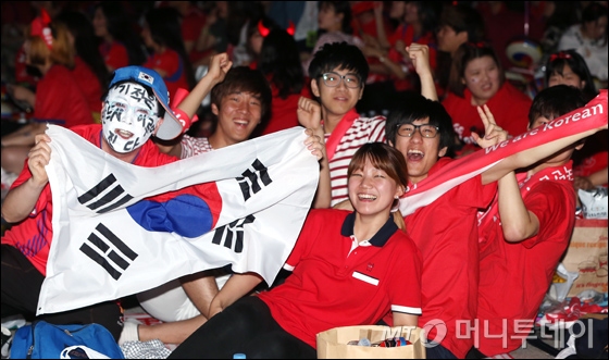 2014 브라질 월드컵 조별리그 3차전 대한민국과 벨기에 경기의 응원전이 열린 27일 오전 서울 광화문광장을 찾은 시민들이 열띤 응원을 펼치고 있다.
