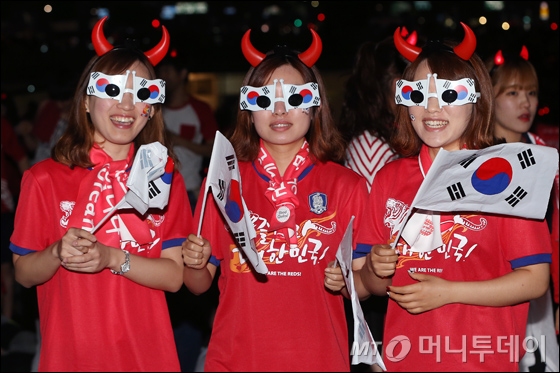 2014 브라질 월드컵 조별리그 3차전 대한민국과 벨기에 경기의 응원전이 열린 27일 오전 서울 광화문광장을 찾은 시민들이 열띤 응원을 펼치고 있다.