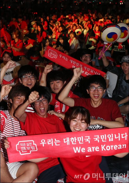 2014 브라질 월드컵 조별리그 3차전 대한민국과 벨기에 경기의 응원전이 열린 27일 오전 서울 광화문광장을 찾은 시민들이 열띤 응원을 펼치고 있다.
