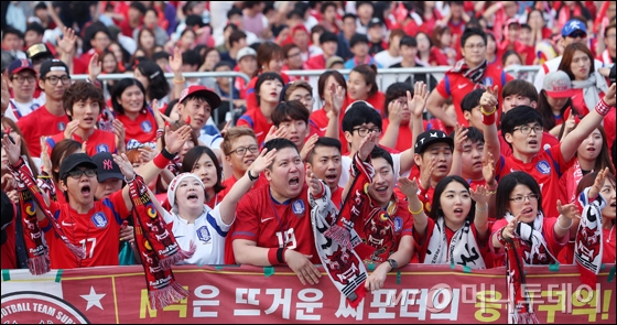 2014 브라질 월드컵 조별리그 3차전 대한민국과 벨기에 경기의 응원전이 열린 27일 오전 서울 광화문광장을 찾은 시민들이 열띤 응원을 펼치고 있다.