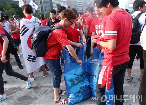 2014 브라질 월드컵 조별리그 3차전 대한민국과 벨기에 경기의 응원전이 열린 27일 오전 서울 광화문광장을 찾은 시민들이 태극전사의 패배로 경기가 끝난 후 쓰레기를 치우고 있다. 독자들의 PICK! "죽은 친구 아내 짝사랑한 남편"...눈치챈 아내 말렸지만 '고백' "어느 놈이랑 잤냐"...아내 외도 확인한다며 추행한 남편 '말기암' 60대, 재혼 아내에 660억 상속…전처 자녀들은 '0원' 왜 윤미래, 뒤늦게 알려진 사망 소식..."긴 여행 떠나"