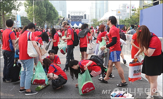 브라질월드컵 조별리그 3차전 벨기에와의 경기가 끝난 27일 오전 서울 영동대로에 마련된 무대 앞에서 붉은악마와 시민들이 거리청소를 하고 있다. 독자들의 PICK! "죽은 친구 아내 짝사랑한 남편"...눈치챈 아내 말렸지만 '고백' "어느 놈이랑 잤냐"...아내 외도 확인한다며 추행한 남편 '말기암' 60대, 재혼 아내에 660억 상속…전처 자녀들은 '0원' 왜 윤미래, 뒤늦게 알려진 사망 소식..."긴 여행 떠나"