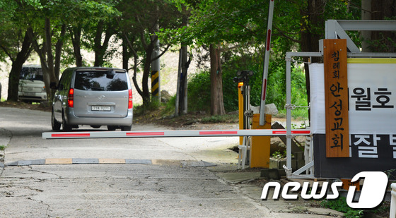 지난달 전남 순천의 한 매실밭에서 발견된 시신이 유병언(73) 전 세모그룹 회장으로 최종 확인된 22일 오전 경기도 안성 금수원으로 차량이 들어가고 있다. 2014.7.22/뉴스1