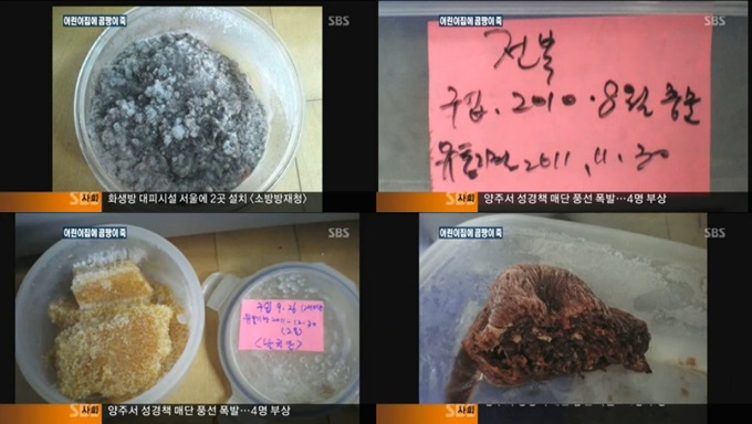2011년 서울 모 어린이집에서 단속 적발된 '곰팡이죽'/ 사진=SBS 방송화면 캡처
