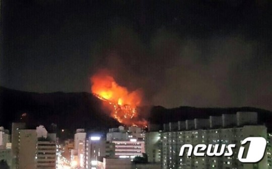 13일 밤 서울 노원구 중계동 불암산에서 화재가 발생했다. / 사진=뉴스1