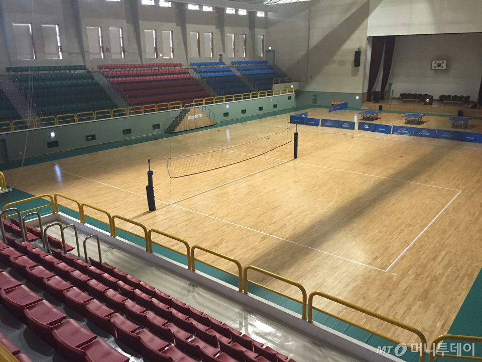 세월호를 집어삼킨 바다를 24시간 비추던 스크린이 있던 자리에는 연단이 들어섰다. 1년 전 '생존자 명단'이 붙었던 벽도 흔적 없이 깨끗했다. 실종자 가족들의 이불과 가족사진, 캐리커처, 아이들의 신발과 야구복이 있던 체육관 바닥은 경기장으로 탈바꿈했다. 배구 코트와 탁구대가 가지런히 놓였다.