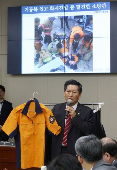 정청래 새정치민주연합 의원은 이날 국감에서 소방관의 방한복과 기동복 예산낭비와 납품비리 의혹을 집중 제기했다.