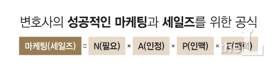 최 변호사를 예로 들어보자. 법률문제는 언제든 발생할 수 있고 발생하게 되면 전문가를 반드시 찾을 수밖에 없다(N). 최 변호사의 법률 분쟁 해결 실력은 널리 인정받고 있다(A). 그리고 최변호사는 온, 오프라인을 통해 충분한 숫자의 사람들을 알고 있다(P). 아울러 최변호사는 인간적인 멋이 있어서 사람들은 그를 좋아한다(E).