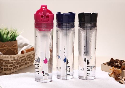 휴대가 가능하고 평상시에는 텀블러로 사용이 가능한 투웨이보틀은 단순한 원리지만 특허기술이 녹아있는 기발한 제품이다. 보틀 입구는 두 개, 한 곳은 텀블러 역할을 해 차, 커피, 음료 등을 이용하고 다른 입구를 개봉하면 빨대가 나온다. 이 스트로우를 통해 물을 담아 섭취하면 물병 내부 필터를 거쳐 정수기능이 가진다.