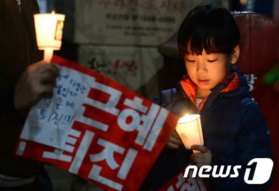 아이 엄마인 박모씨(36·여)는 경기도 남양주에서 6살배기 아들을 데리고 왔다. 아들은 아빠 목말을 탔다. 박씨는 "아이에게 현실을 보여주기 위해 나왔다"며 "앞으로 아이가 꿈을 펼쳐야 할 세상을 바로잡고 싶었다"고 말했다.