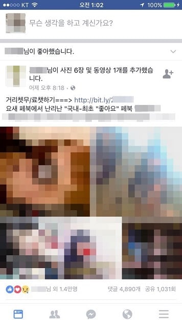 # A씨는 얼마전 황당한 경험을 했다. '왜 이상한 게시물을 페이스북에 공유하냐'는 친구의 연락을 받고 확인해보니 얼마전 페이스북에 공유한 ‘촛불집회’ 영상이 낯 뜨거운 성인물과 불법도박사이트 광고로 바뀌어 있었던 것이다. 원본 게시물은 수만개의 ‘좋아요’와 수천건의 ‘공유하기’가 된 상태였다.