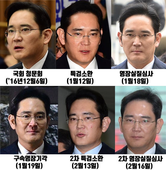 '최순실 게이트' 연루 의혹을 받고 있는 이재용 삼성전자 부회장이 16일 구속 전 피의자심문(영장실질심사)에 다소 수척한 모습으로 나타나 관심을 끌고 있다. 이 부회장은 지난해 12월 '최순실 청문회'에 모습을 보인 뒤 일거수일투족이 관심거리다.