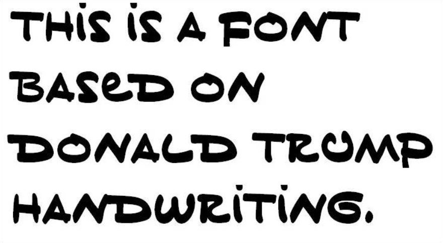미국에서는 트럼프 대통령의 필체를 본뜬 디지털 폰트(글꼴)도 있다. 미국 매체 버즈피드의 디자인 책임자 벤 킹과 타이포그래퍼 마크 데이비스는 트럼프의 글씨를 디지털화한 폰트를 내놓으며 '작은 손'(Tiny Hand)이란 이름을 붙였다. 큰 체격에 비해 작은 손을 가진 트럼프 대통령의 외모를 의미한다. 이 글씨체는 버즈피드 홈페이지에서 무료로 내려받을 수 있다.