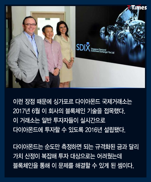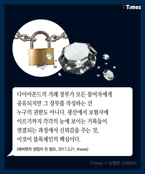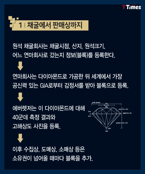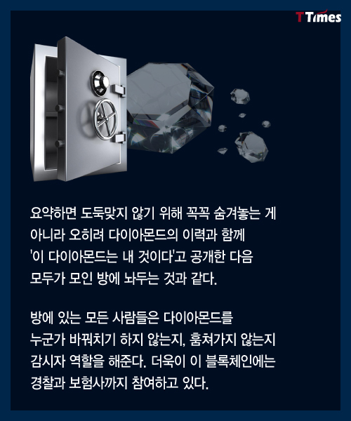 블록체인 기술이 실물에 적용될 수 있는 영역은 무궁무진하다. 이번에는 다이아몬드 거래를 어떻게 투명하게 만들 수 있는지 살펴본다. 고가의 명품에도 응용될 수 있다. 독자들의 PICK! 허니문 베이비 '출생의 비밀'...결혼 직전 전남친 만난 아내 소유, 임영웅과 '제주도 열애설' 전말 공개 '음주 뺑소니' 김호중, 옥중 50억 돈방석?…지분가치 '반전' 남편 방에 정력제..."아들아, 인생 즐겨" 불륜 응원한 시모