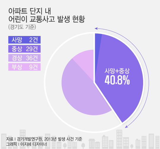 아파트 단지 내 교통사고가 특히 위험한 건 A양 사건처럼 어린이나 노약자들이 피해자가 될 가능성이 상대적으로높기 때문이다. 따라서 엄중하게 대처해 운전자들에게 경각심을 일깨울 필요가 있다는 게 전문가들의 지적이다.