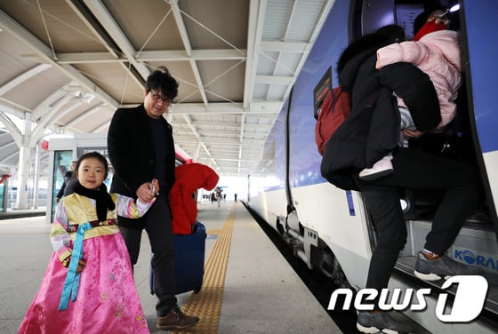 = 설 연휴를 하루 앞둔 14일 충북 청주시 오송역에서 한복을 입은 어린이가 아버지 손을 잡고 기차에 타고 있다. 2018.2.14/뉴스1 <저작권자 © 뉴스1코리아, 무단전재 및 재배포 금지> 독자들의 PICK! '아들 불륜' 조갑경 예능 출연에 전며느리 분노..."난 고통 속에 사는데" 의사 남편 외도 봐줬더니 또…"상간녀 위자료도 대신 내" '은퇴' 조진웅, 말레이시아 목격담…4개월 만에 알려진 근황 "총각인 줄 알고 결혼" 빚더미 남편, 전처·자식 숨겼다...아내 충격