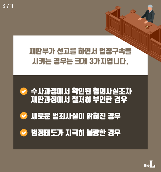 재판부가 선고를 하면서 법정구속을 시키는 경우는 크게 3가지입니다.