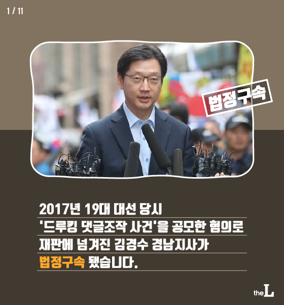2017년 19대 대선 당시 '드루킹 댓글조작 사건'을 공모한 혐의로 재판에 넘겨진 김경수 경남지사가 법정구속 됐습니다.