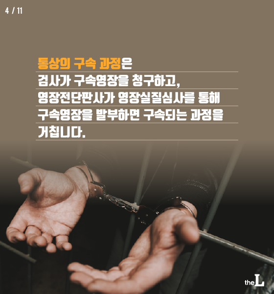 통상의 구속 과정은 검사가 구속영장을 청구하고, 영장전단판사가 영장실질심사를 통해 구속영장을 발부하면 구속되는 과정을 거칩니다.