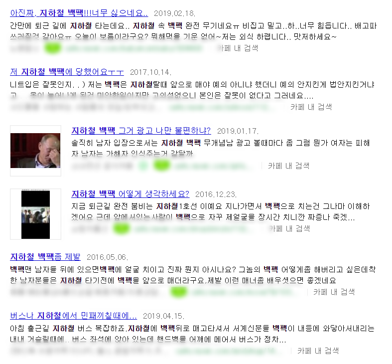 누리꾼 C씨는 "매일 출근길 만원 지하철에서 백팩에 밀려 휘청거리며 출근한다. 백팩에 여기저기 얻어 맞는다고 해도 과장이 아니다. 백팩을 앞으로 메고 타는게 그렇게 어려운 일인가 싶다"라고 꼬집었다.