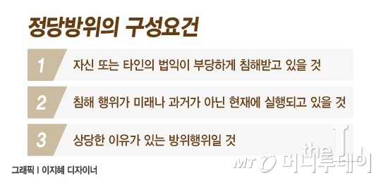 우리 법원은 정당방위를 극히 제한적으로 인정하고 있다.