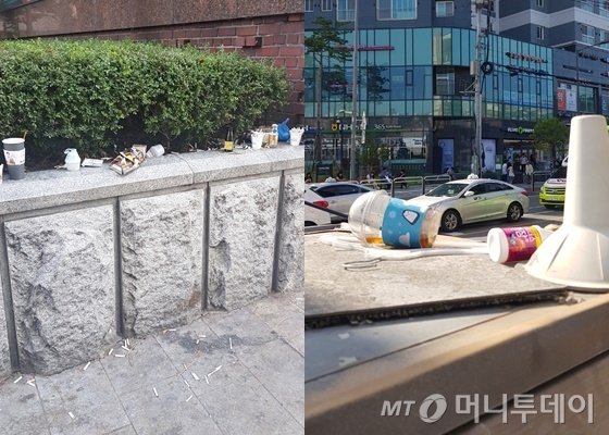 인근 대학교 학생 김모씨(21)는 "가판대 문이 닫혀 있으면 꼭 저렇게 쓰레기가 생긴다. 자연스레 놓고 가기 딱 좋은 높이라서 쉽게 버리고 가는 것 같다. 누군가 한 명 컵을 두고 가면 쓰레기가 쌓이는 건 시간 문제"라고 말했다.