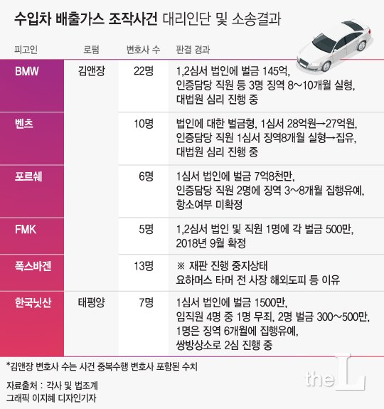 [the L][로펌 vs 로펌] 배출가스 조작사건, 46명 동원한 김앤장(BMW·벤츠 등) 및 7명 동원한 태평양(닛산) 엇갈린 희비