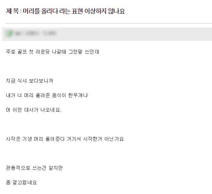 #직장인 A씨(27)는 며칠 전 사회연결망서비스(SNS)를 훑어보다 흠칫했다. 직장 동료가 '우리 아내 머리 올려준 날'이라며 부인의 사진을 찍어 올려서다. '머리 올린다'는 표현이 과거 기생에게 사용됐던 것이라 알고 있던 A씨. 놀란 마음에 검색해보니 골프 치는 사람들 사이에서 흔히 쓰이는 관용적 표현이었다. 이 말을 쓴 당사자들은 별생각 없어 보였지만, A씨는 왠지 꺼림칙했다.