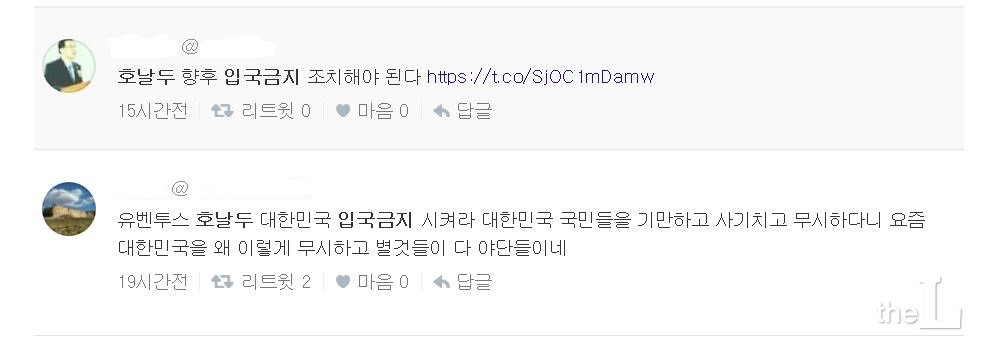 유벤투스와 호날두의 SNS(소셜네트워크서비스)에는 분노한 한국 팬들의 항의 글이 이어지고 있다.