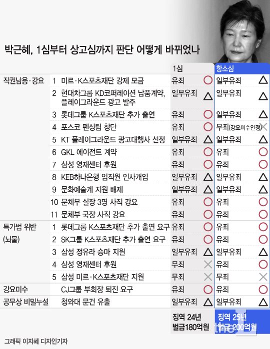 미르재단, 케이스포츠재단 설립 모금 등 일부 직권남용 혐의에 대해서도 2심 판단에 따른 무죄가 맞다고 봤다.