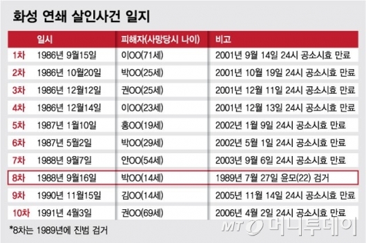 3개 사건 현장 증거물서 DNA 나와, 부산교도소 복역 중…공소시효는 2006년 만료