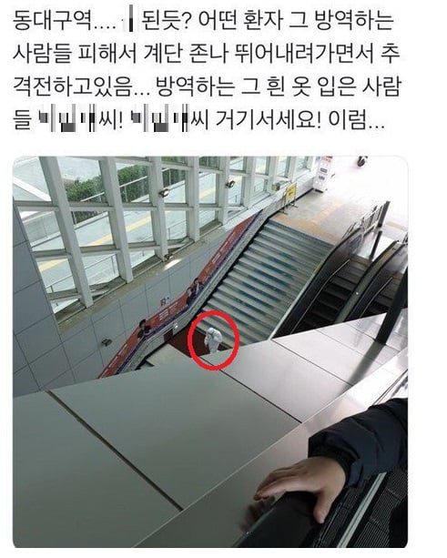 29일 온라인 커뮤니티와 SNS 등에는 "동대구역이 X 됐다"는 게시글이 잇따라 올라왔다. 해당 게시글에는 방진복(감염을 방지하는 흰색 옷)을 입은 사람 3~4명이 "박XX씨는 거기 서라"고 외치며 동대구역을 뛰어다닌다는 내용의 사진이 담겼다.