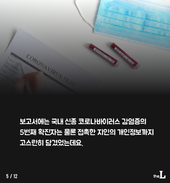 보고서에는 국내 신종 코로나바이러스 감염증의 5번째 확진자는 물론 접촉한 지인의 개인정보까지 고스란히 담겼었는데요.