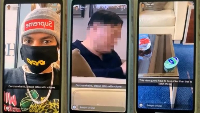 알리는 이날 스냅챗을 통해 "코로나 어쩌구? 볼륨을 높여 들어봐"라는 자막이 들어간 영상을 공유했다. 영상 속에는 검은 마스크를 쓴 알리가 중국어를 말하는 듯한 동양인 남성을 향해 화면을 돌리는 모습이 담겨 있다. 이 과정에서 이 남성의 얼굴이 동의 없이 모두 노출됐다.