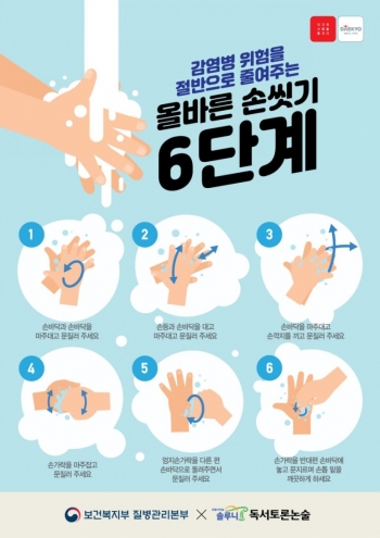 질병관리본부에 따르면 손을 제대로 씻으려면 △손바닥과 손바닥 문지르기 △손등과 손바닥 마주대고 문지르기 △손깍지를 끼고 문지르기 △손가락을 마주 잡고 문지르기 △엄지손가락을 다른 편 손바닥으로 돌려주면서 문지르기 △손가락을 반대편 손바닥에 놓고 문지르며 손톱 밑 씻기 등 6단계로 진행해야 한다.