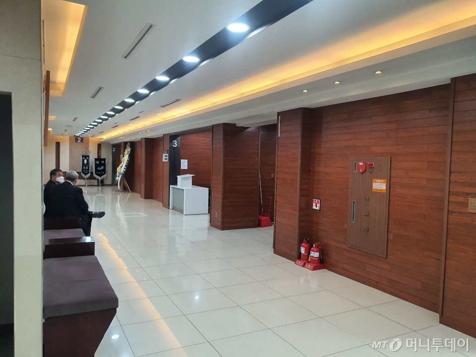 그러나 이날 찾은 장례식장에서는 조문객을 찾아보기 힘들었다. 평소 빈소로 사용된 3층은 출입구 일원화를 위해 3층 입구와 함께 전면 폐쇄됐다. 오직 1층 입구만 사용이 가능했다. 사용 중인 빈소 일부는 접객실을 운영하지 않는 곳도 있었다.