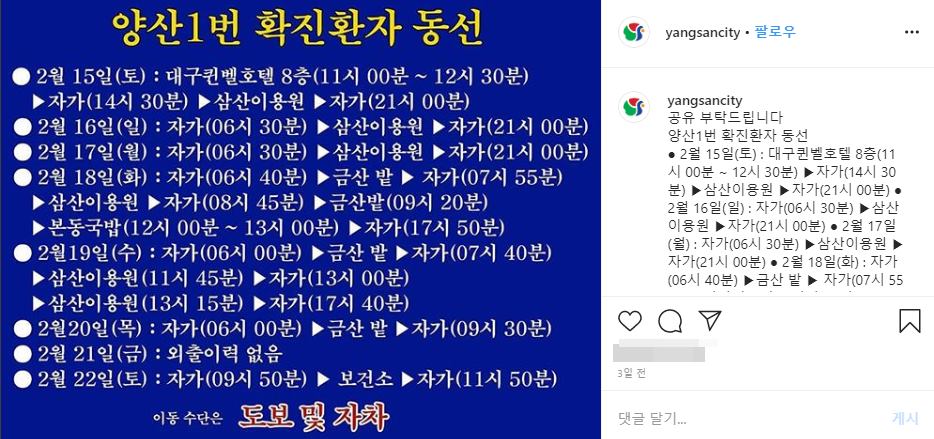양산시는 지난 23일 오전 양산 동면지역에 거주하는 70세 남성 A씨가 양산지역 첫 코로나19 확진 판정을 받았다고 밝히고 동선을 공개했다.